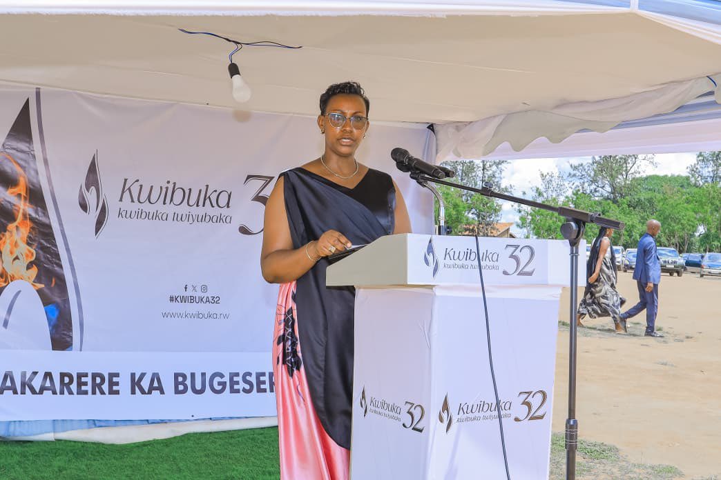 Ati “Uyu munsi turibuka ku nshuro ya 32 Jenoside yakorewe Abatutsi,Abanyamuryango ba IBUKA turashima ubuyobozi bw’igihugu cyacu kuko uyu munsi turabyita icyacu kuko tubyemerewe. Turashimira leta y’Ubumwe bw’Abanyarwanda by’umwihariko Perezida Kagame, uruhare rukomeye rutaziguye yagize kandi kugeza n’ubu ubuzima bwacu turacyarubona, turacyaruzirikana ndetse tubifata nk’umwihariko. Uburyo dufatwa amaboko,dukomezwa kugira ngo tudasubira mu rupfu twabayemo.”
