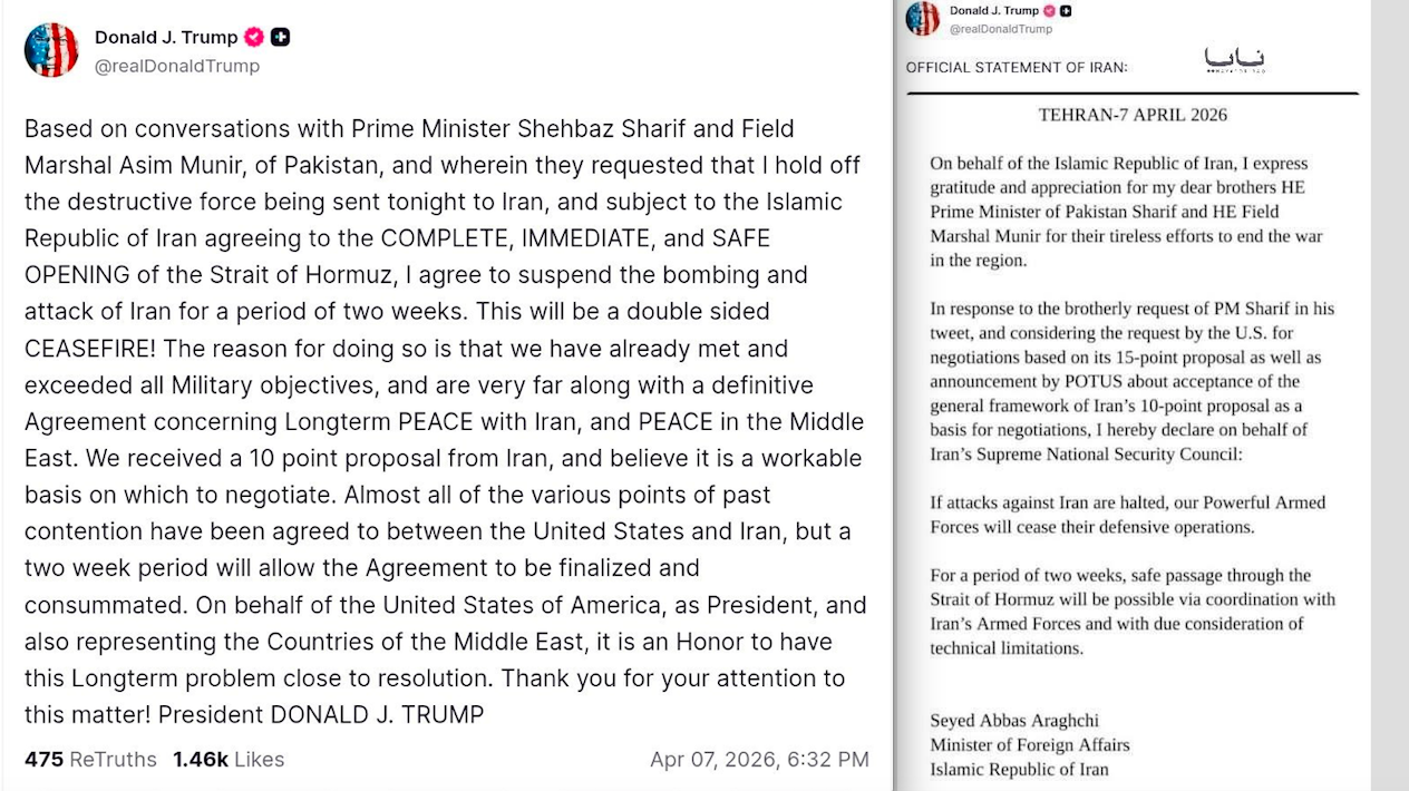Isi igiye kumara iminsi ihumeka nyuma y’iminsi 40 y’akangaratete yashyizwemo n’ibitero bya Leta zunze ubumwe za America na Israel kuri Iran, Perezida Donald Trump yemeje ko ahagarika ibitero mu gahenge kazamara ibyumweru bibiri, na Iran yabyemeje.