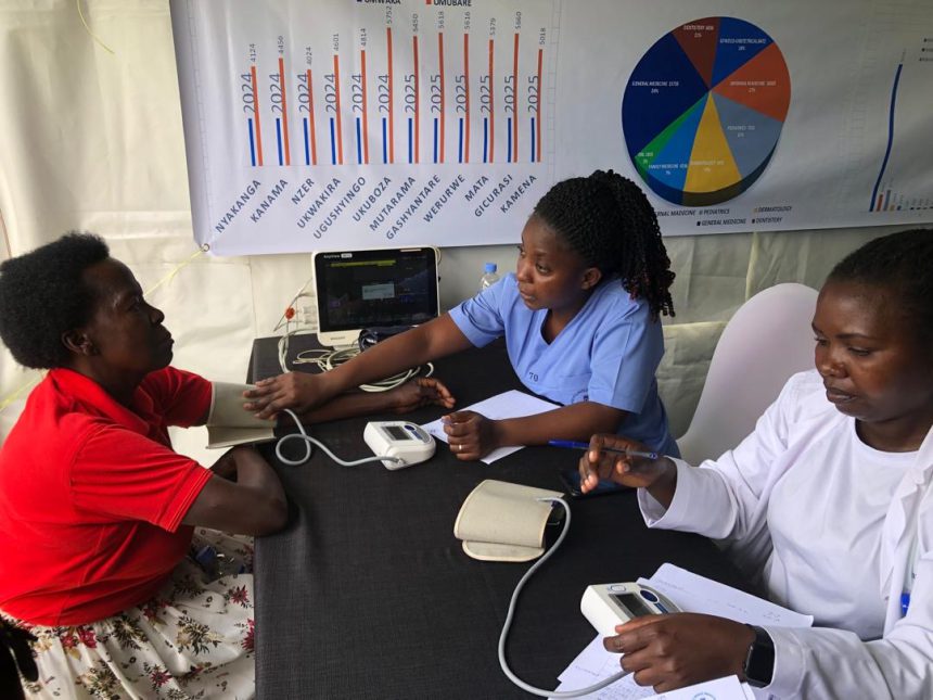 Avuga ko mu barenga 200 bamaze gusuzuma, basanze abarenga 60 bafite ikibazo cy’umuvuduko w’amaraso na diyabete, kandi ko bagiriwe inama yo kugana amavuriro abegereye kugira ngo bitabweho.
