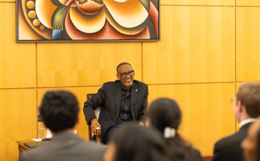 Perezida Kagame yaganirije aba banyeshuri ku iterambere ry’u Rwanda mu myaka 32 ishize, yibanda ku miyoborere inoze kandi ibazwa inshingano.