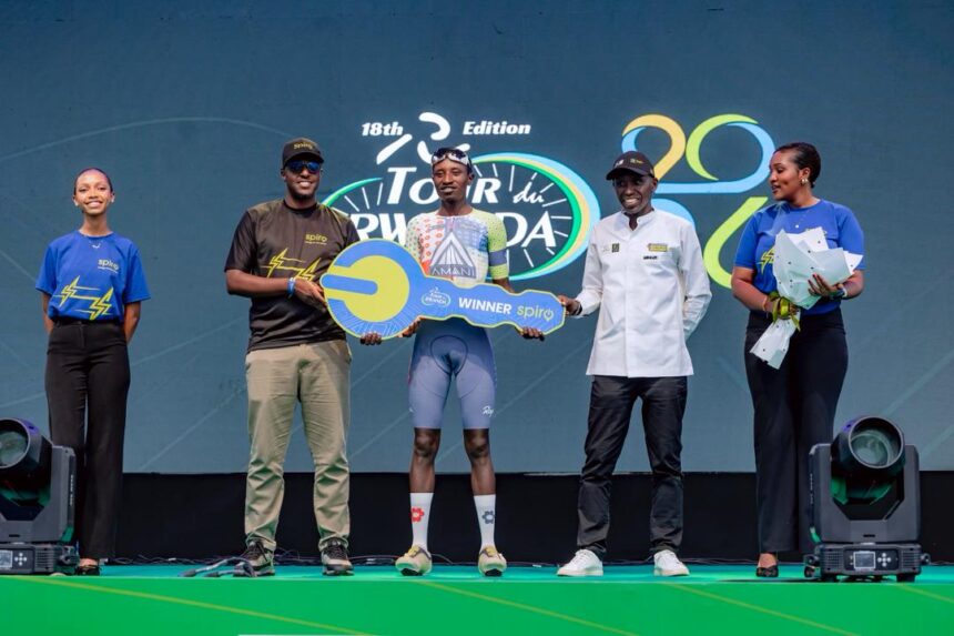 Tour du Rwanda 2026: Umunyarwanda Muhoza Eric ukinira Team Amani yahembwe moto ya kabiri na Spiro Rwanda nk’Umunyarwanda witwaye neza kurusha abandi mu gace gasoza Tour du Rwanda 2026.