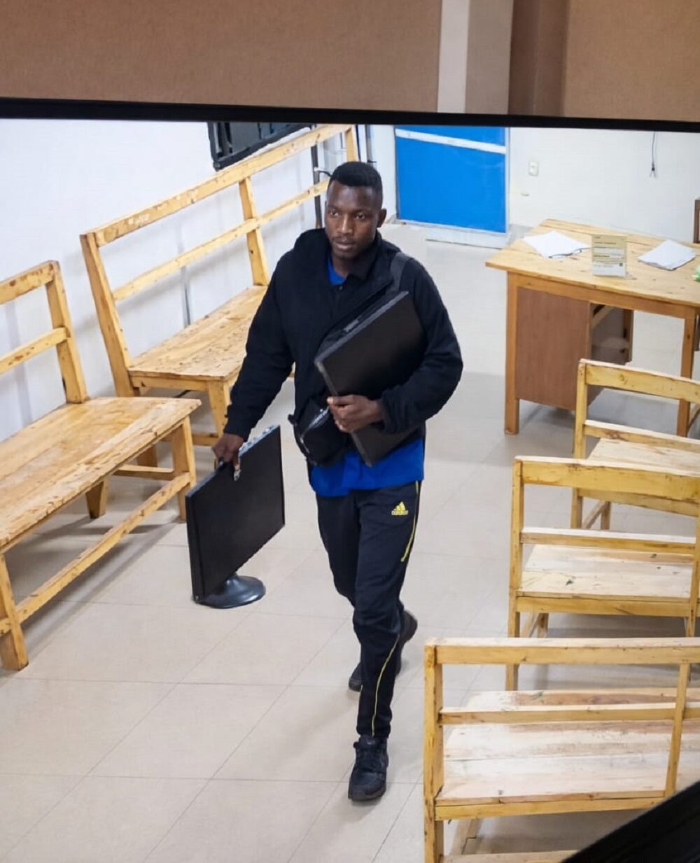 Uyu akekwaho kuba yaragiye kwiba izo mudasobwa mu ijoro ryo ku wa 10 – 11 Mata 2026.